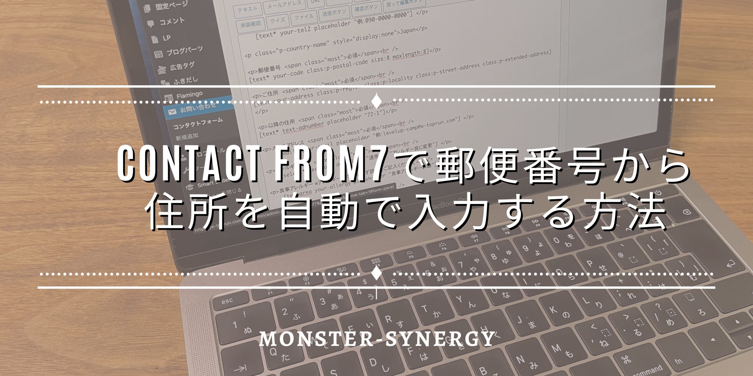 下記のコードをコンタクトフォーム内にコピペします。場所はどこでもOKですが郵便番号のinputの近くのほうがわかりやすいと思います。